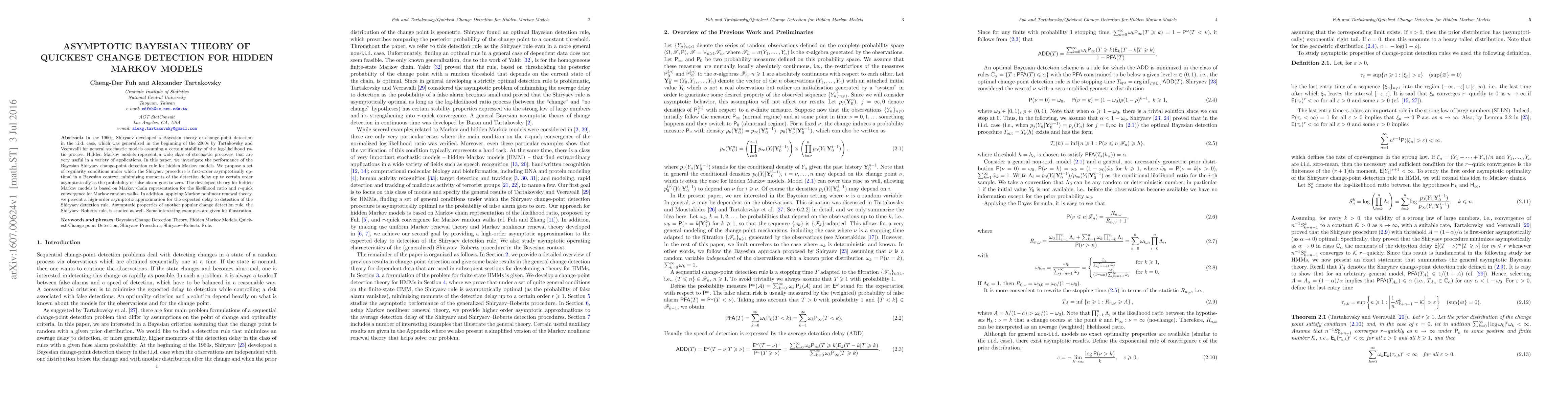 This work is novel because it generalizes the Bayesian theory of change-point detection from i.i.d. cases to hidden Markov models, and provides a new theoretical framework for quick change detection.