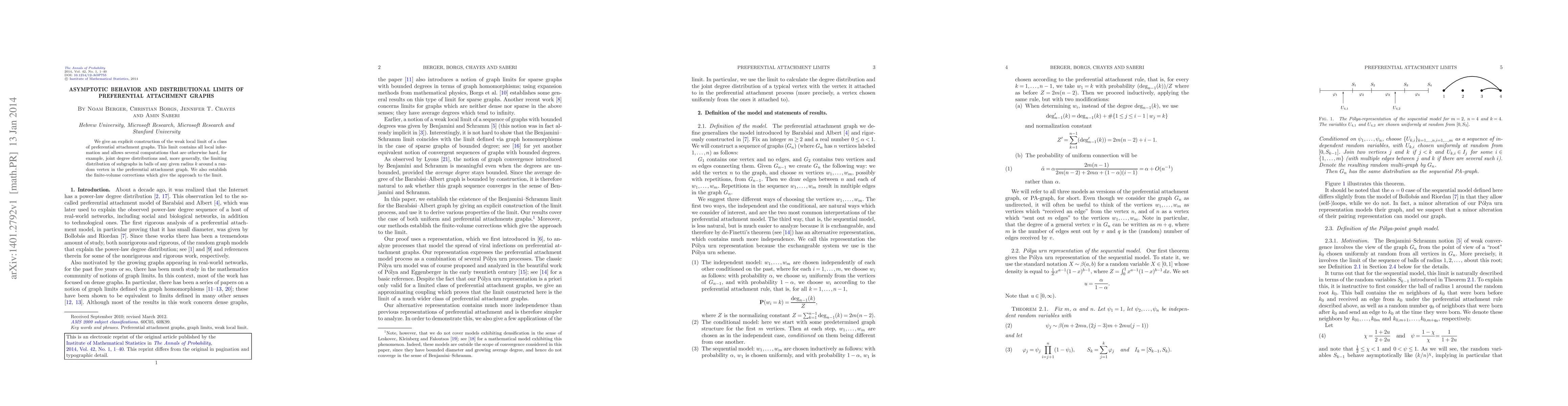 This paper constructs the weak local limit of preferential attachment graphs, providing a framework for computing joint degree distributions and subgraph distributions, while also addressing finite-volume corrections for the approach to the limit.