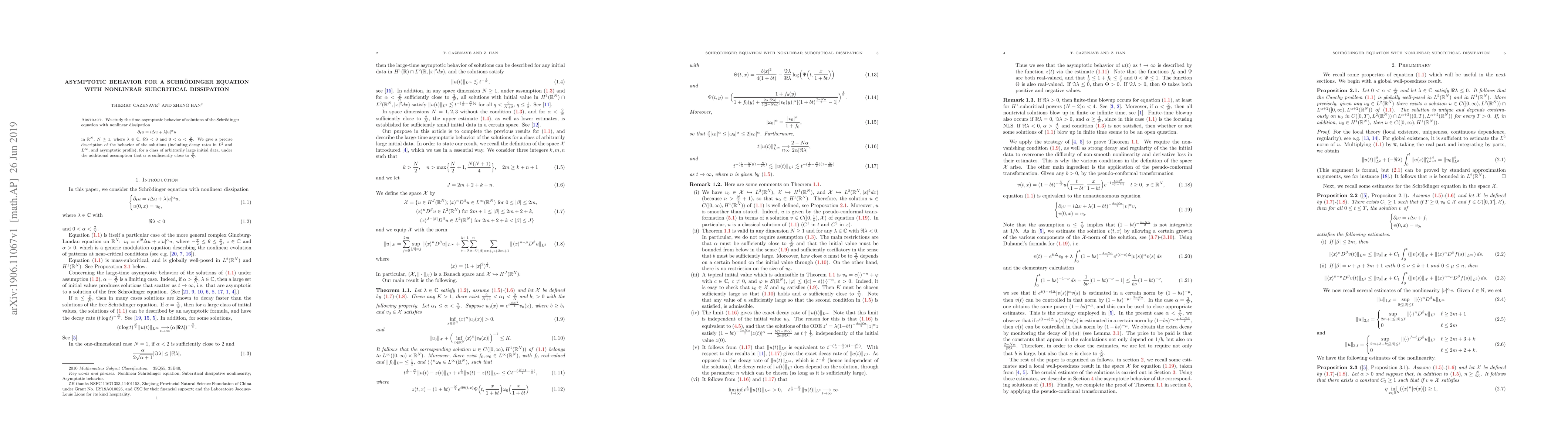 We study the time-asymptotic behavior of solutions of the Schr\"odinger equation with nonlinear dissipation \begin{equation*} \partial _t u = i \Delta u + \lambda |u|^\alpha u \end{equation*} in ${\mathbb R}^N $, $N\geq1$, where $\lambda\in {\mathbb C}$, $\Re \lambda <0$ and $0<\alpha<\frac2N$. We give a precise description of the behavior of the solutions (including decay rates in $L^2$ and $L^\infty $, and asymptotic profile), for a class of arbitrarily large initial data, under the additional assumption that $\alpha $ is sufficiently close to $\frac2N$.