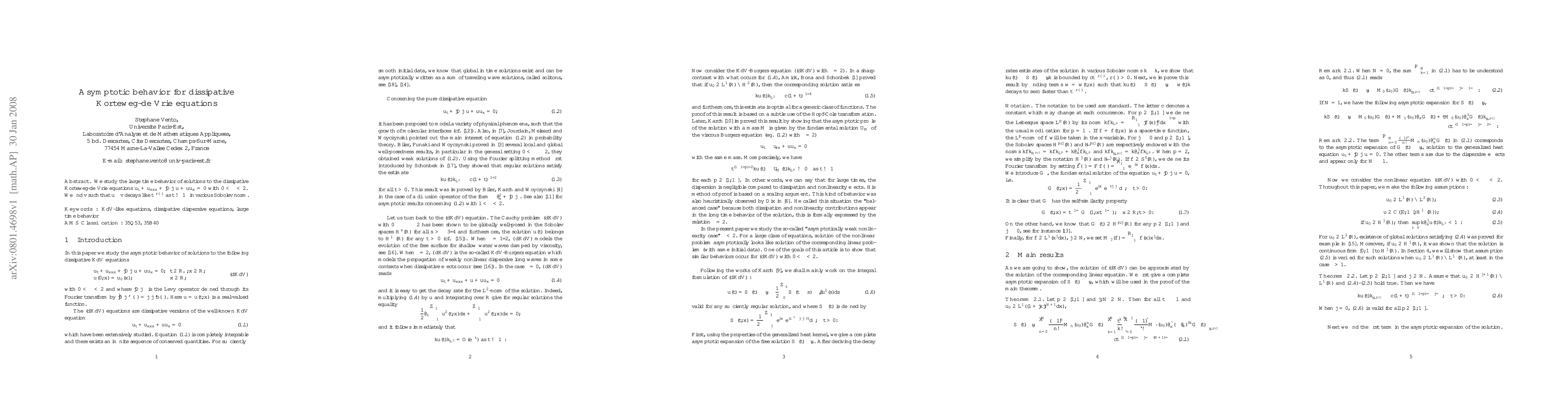 We study the large time behavior of solutions to the dissipative Korteweg-de Vrie equations $u_t+u_{xxx}+|D|^{\alpha}u+uu_x=0$ with $0<\alpha<2$. We find $v$ such that $u-v$ decays like $t^{-r(\alpha)}$ as $t\to\infty$ in various Sobolev norm.
