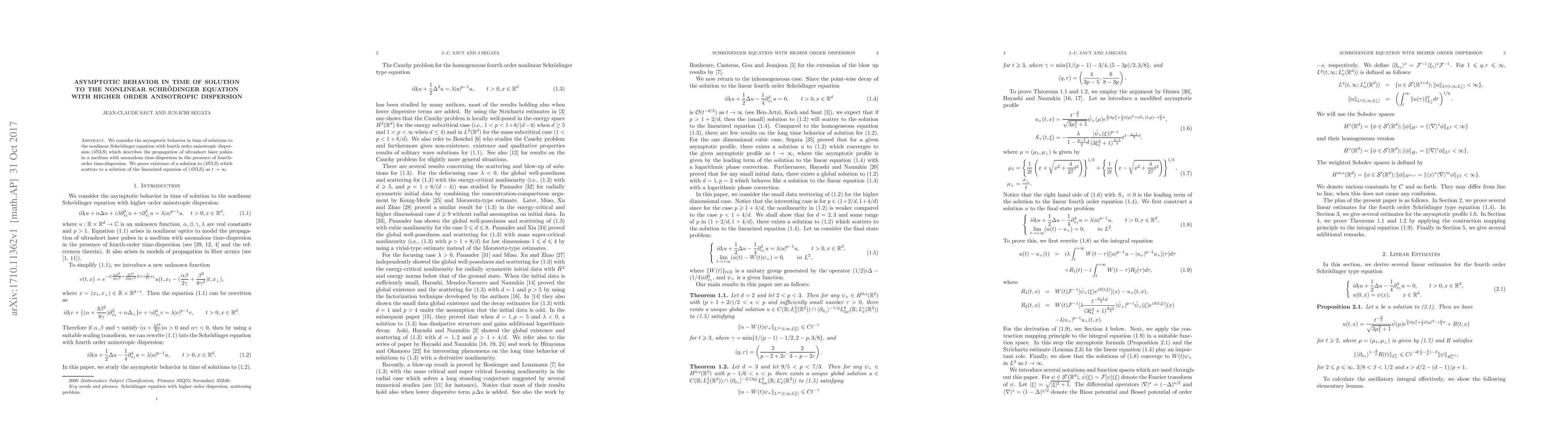 This paper investigates the asymptotic behavior of solutions to the fourth-order nonlinear Schrödinger equation (4NLS) with anisotropic dispersion, focusing on ultrashort laser pulses. The authors prove the existence of a solution that scatters to a solution of the linearized version of the equation.