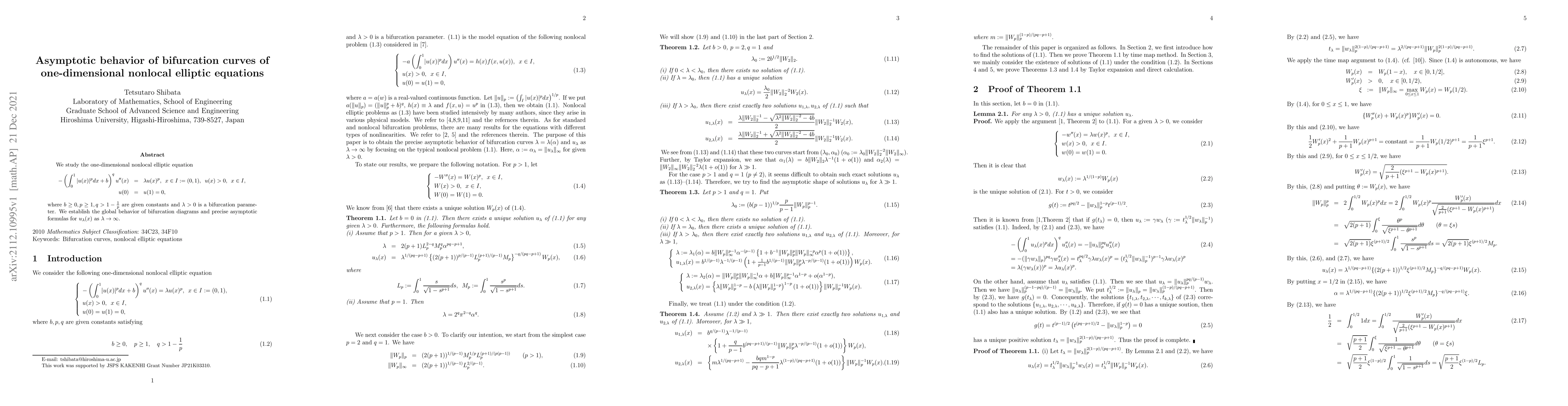 Researchers studied a one-dimensional nonlocal elliptic equation to understand its behavior as a parameter changes, finding global behavior of bifurcation diagrams and precise formulas for solutions as the parameter approaches infinity.