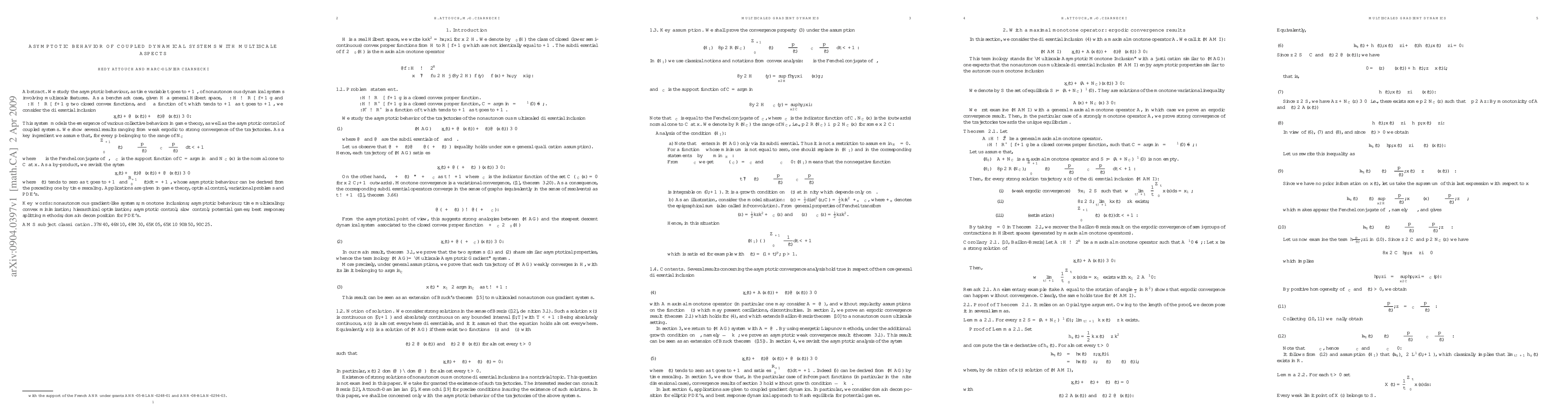 We study the asymptotic behavior, as time t goes to infinity, of nonautonomous dynamical systems involving multiscale features. These systems model the emergence of various collective behaviors in game theory, as well as the asymptotic control of coupled sytems.