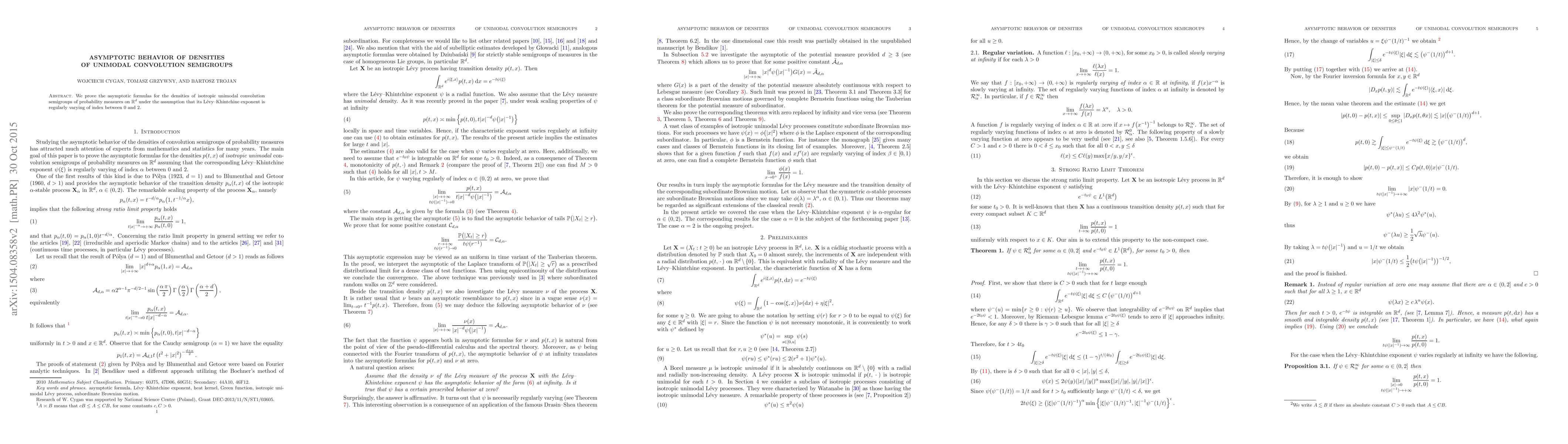 This paper establishes asymptotic formulas for the transition densities of isotropic unimodal convolution semigroups on $\mathbb{R}^d$, assuming the Lévy-Khintchine exponent is regularly varying with an index between 0 and 2. The results provide insights into the long-term behavior of these density functions.