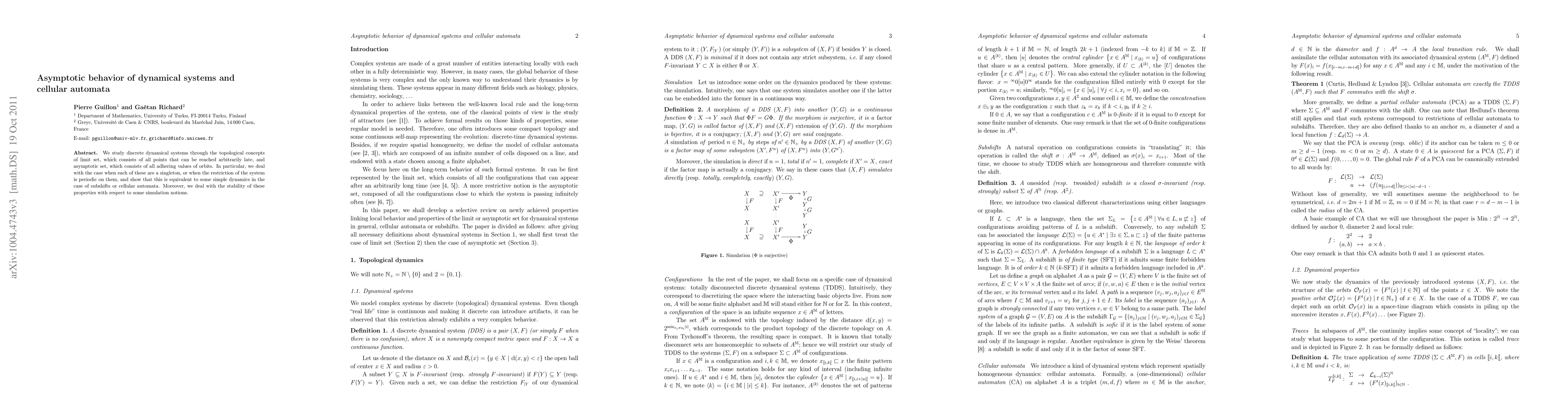 This paper investigates the asymptotic behavior of discrete dynamical systems and cellular automata, focusing on limit sets and asymptotic sets. It demonstrates that when these sets are singletons or the system exhibits periodic behavior on them, it corresponds to simple dynamics in subshifts or cellular automata, and examines stability under simulation notions.