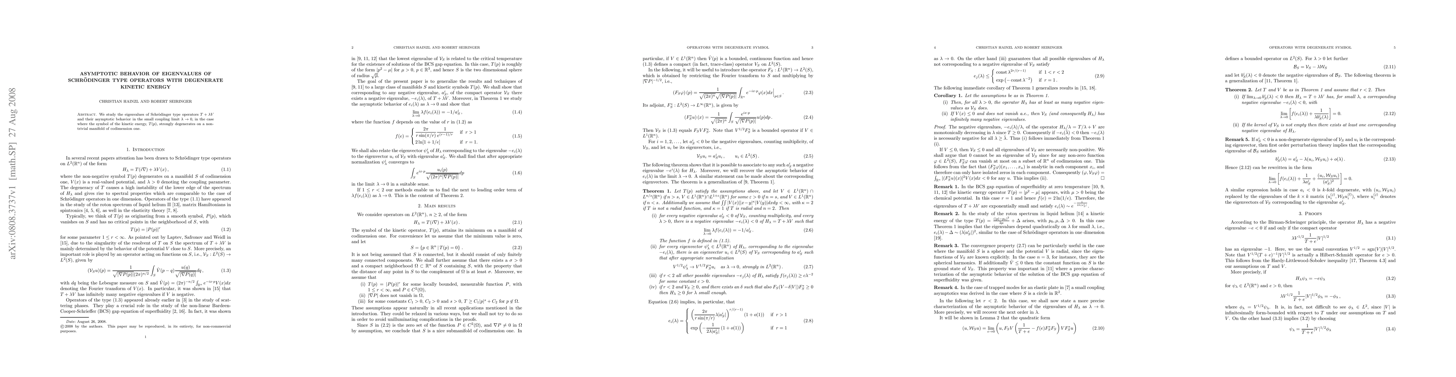 We study the eigenvalues of Schr\"odinger type operators $T + \lambda V$ and their asymptotic behavior in the small coupling limit $\lambda \to 0$, in the case where the symbol of the kinetic energy, $T(p)$, strongly degenerates on a non-trivial manifold of codimension one.
