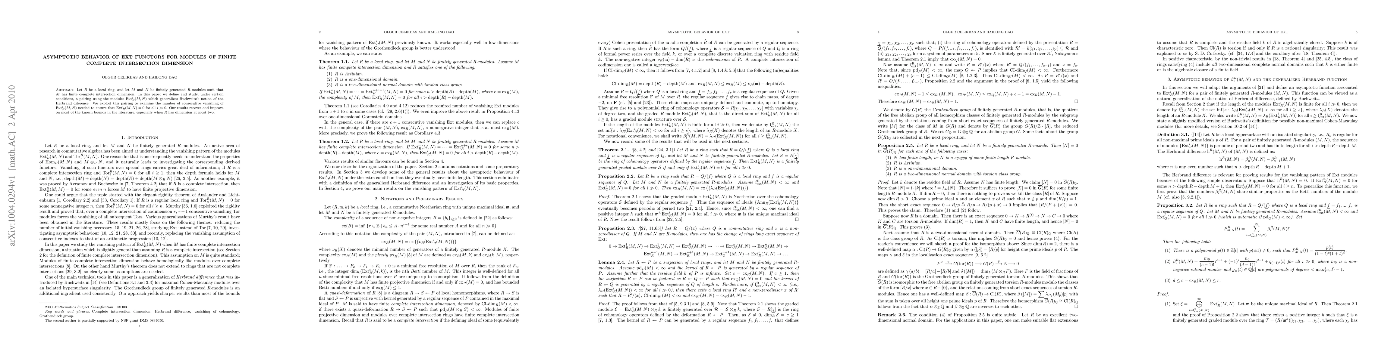 This paper studies the asymptotic behavior of $\Ext$ functors for modules with finite complete intersection dimension over a local ring $R$. It introduces a pairing generalizing Buchweitz's notion to improve known bounds on the vanishing of $\Ext$ functors, particularly for rings of dimension at most two.
