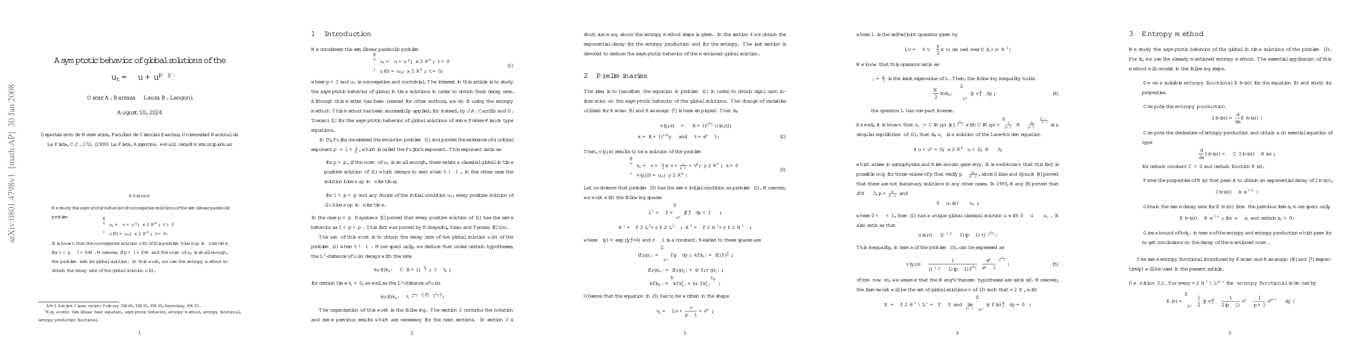 This paper investigates the asymptotic behavior of nonnegative solutions to the semilinear parabolic equation \(u_t = \Delta u + u^p\). It finds that for \(p > 1 + 2/N\), small initial data lead to global solutions, and the entropy method is used to determine their decay rate.