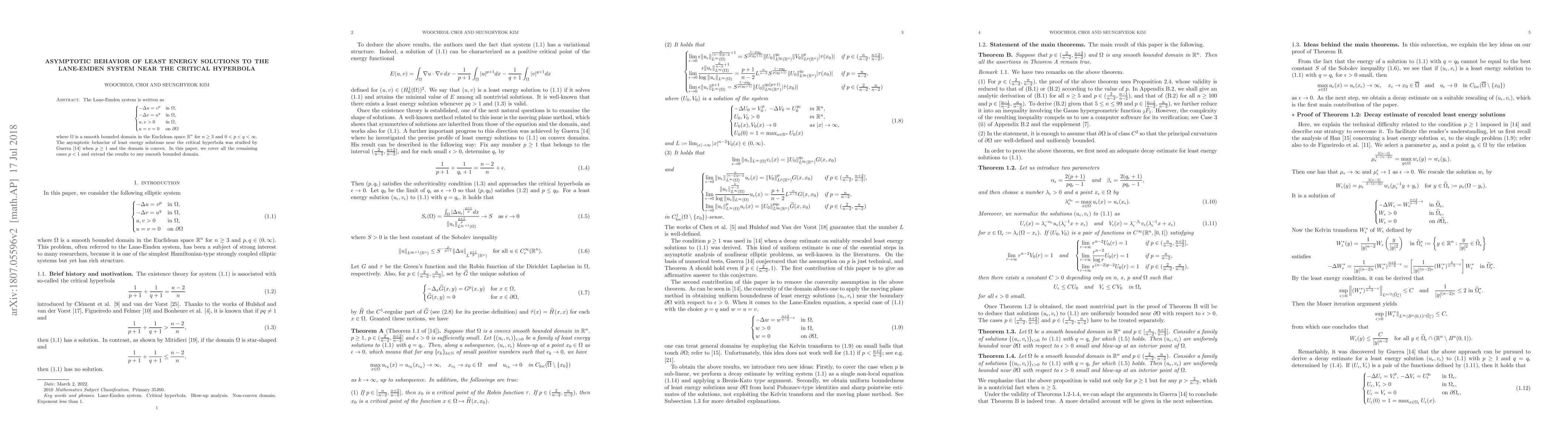 This paper investigates the asymptotic behavior of least energy solutions to the Lane-Emden system near the critical hyperbola, extending Guerra's results to cover cases where $p < 1$ and for any smooth bounded domain, not just convex ones.