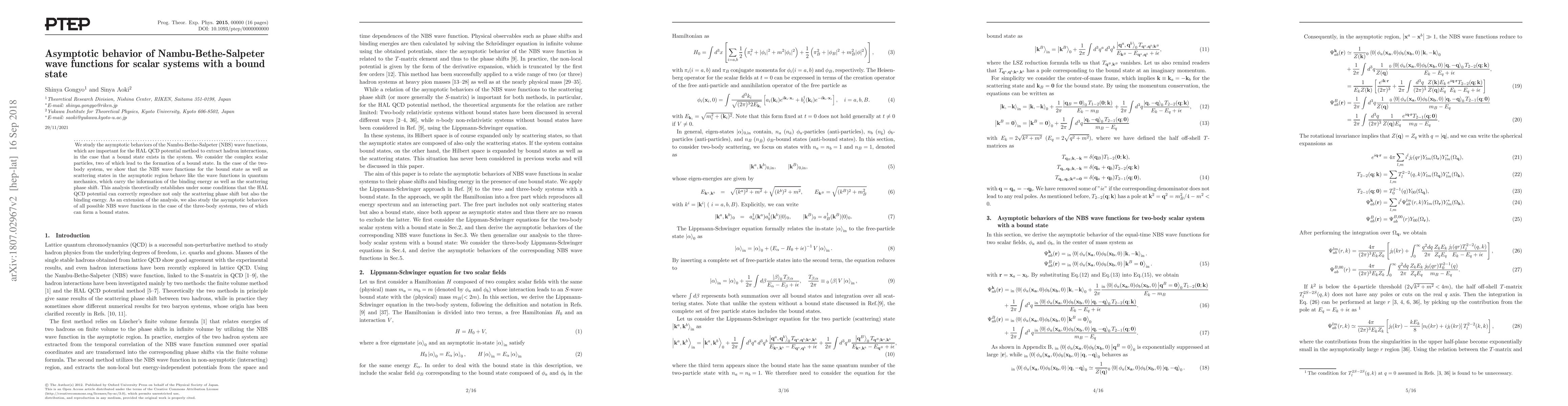 Researchers analyzed the asymptotic behavior of Nambu-Bethe-Salpeter wave functions for bound state systems, finding that they behave similarly to quantum mechanics wave functions, allowing for accurate reproduction of binding energy and scattering phase shifts.