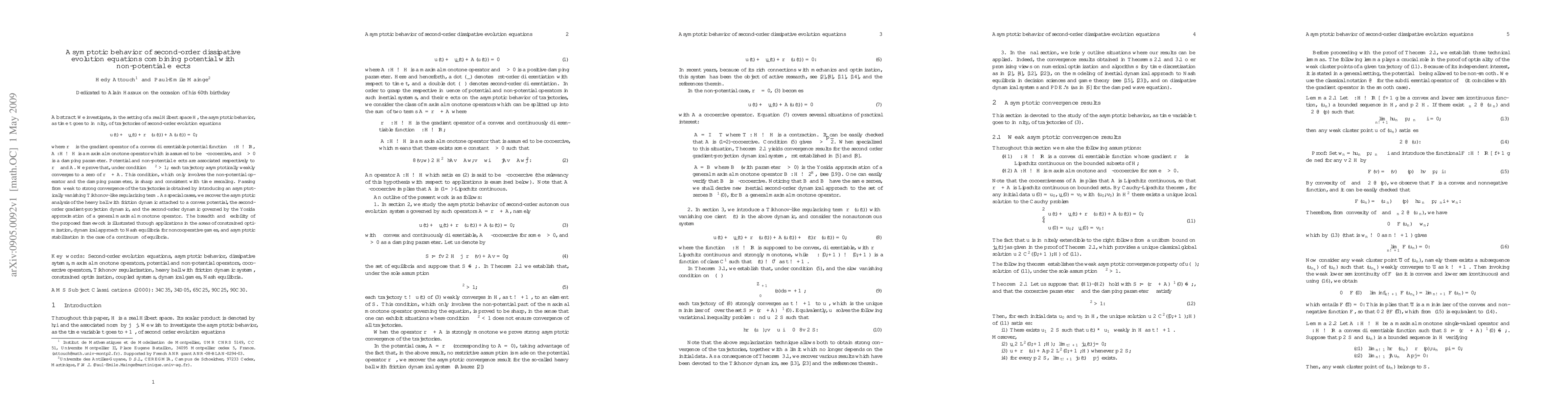 We study the asymptotic convergence properties, as the time variable goes to infinity, of trajectories of second-order dissipative evolution equations combining potential with non-potential effects. We exhibit a sharp condition, involving the damping parameter and the cocoercive coefficient of the non-potential operator, which guarantees convergence to equilibria of the trajectories. Applications are given to constrained optimization, fixed point problems, dynamical approach to Nash equilibria, and asymptotic stabilization in the case of a continuum of equilibria.