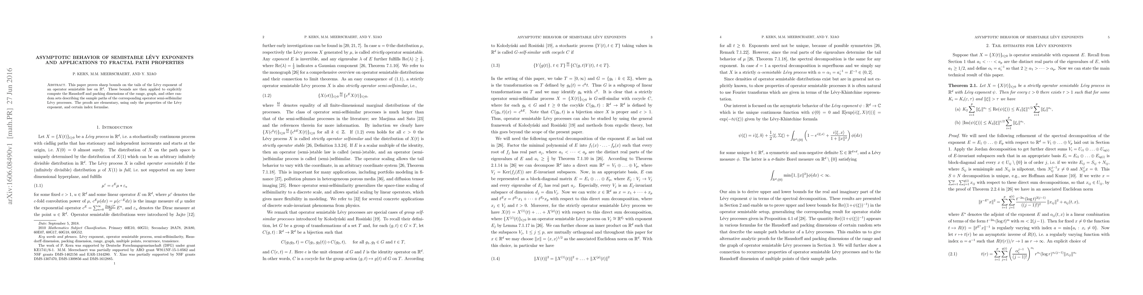 This paper proves sharp bounds on the tails of the Lévy exponent for operator semistable laws, which helps compute dimensions of sample paths of corresponding processes, including Hausdorff and packing dimensions.