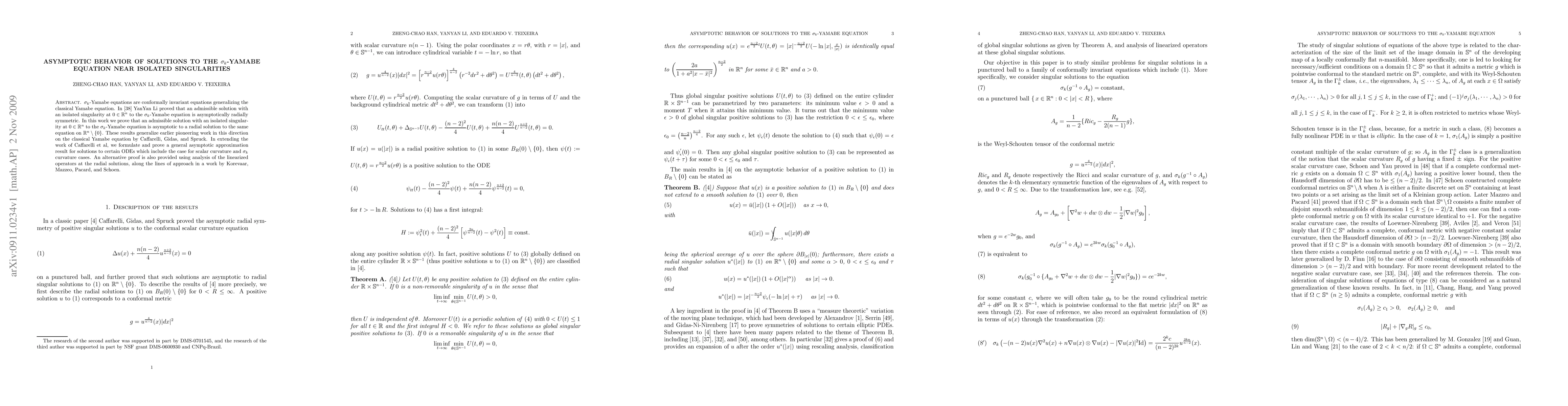 $\sigma_k$-Yamabe equations are conformally invariant equations generalizing the classical Yamabe equation. In an earlier work YanYan Li proved that an admissible solution with an isolated singularity at $0\in \mathbb R^n$ to the $\sigma_k$-Yamabe equation is asymptotically radially symmetric. In this work we prove that an admissible solution with an isolated singularity at $0\in \mathbb R^n$ to the $\sigma_k$-Yamabe equation is asymptotic to a radial solution to the same equation on $\mathbb R^n \setminus \{0\}$. These results generalize earlier pioneering work in this direction on the classical Yamabe equation by Caffarelli, Gidas, and Spruck. In extending the work of Caffarelli et al, we formulate and prove a general asymptotic approximation result for solutions to certain ODEs which include the case for scalar curvature and $\sigma_k$ curvature cases. An alternative proof is also provided using analysis of the linearized operators at the radial solutions, along the lines of approach in a work by Korevaar, Mazzeo, Pacard, and Schoen.