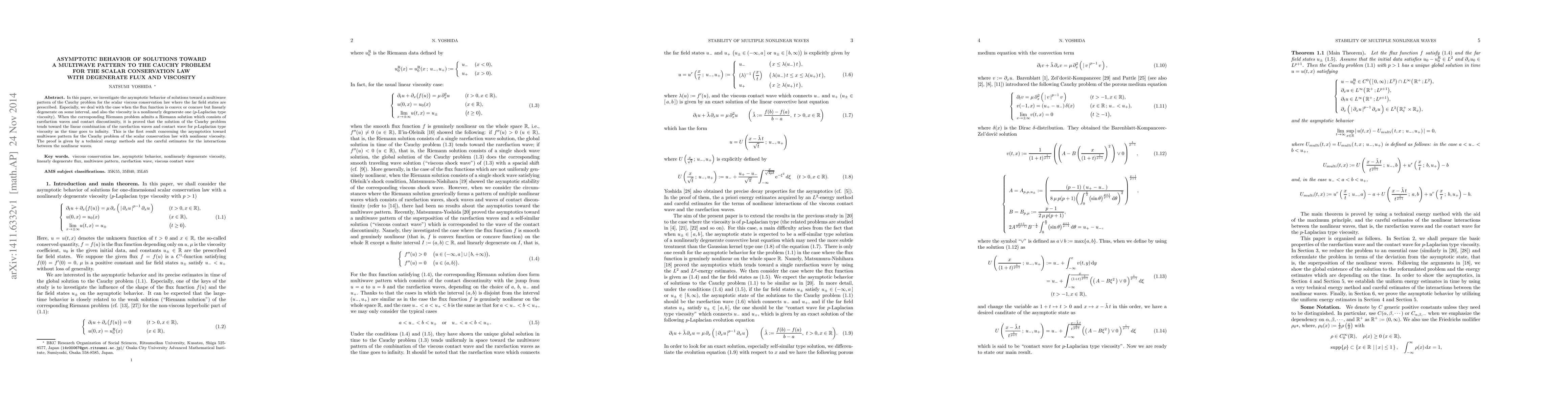 This paper examines the asymptotic behavior of solutions to the Cauchy problem for a scalar viscous conservation law with degenerate flux and viscosity, focusing on cases where the flux is linearly degenerate and the viscosity is of p-Laplacian type. It proves that solutions tend toward a multiwave pattern consisting of rarefaction waves and contact discontinuities as time approaches infinity, marking the first result on this asymptotic behavior for such problems.