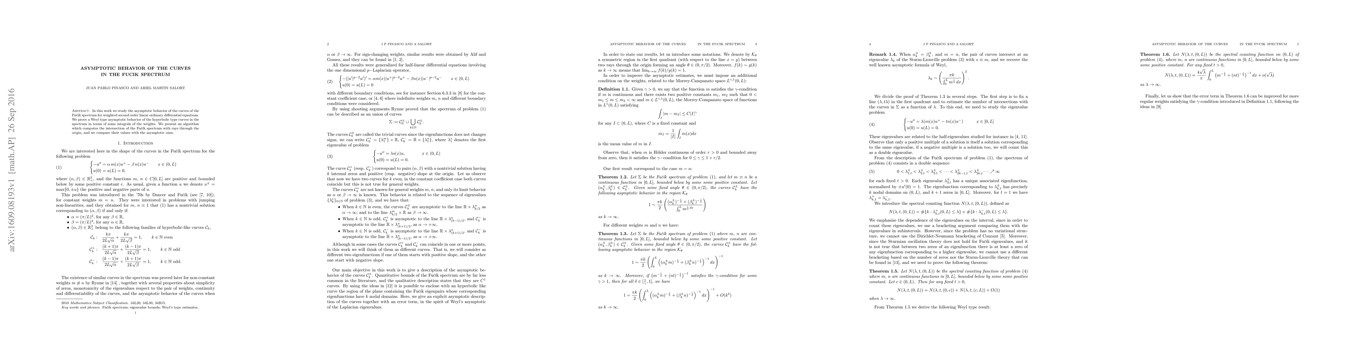 This paper studies the asymptotic behavior of curves in the Fu{œk}k spectrum for weighted second-order linear differential equations, proving a Weyl-type asymptotic behavior in terms of integrals of weights.