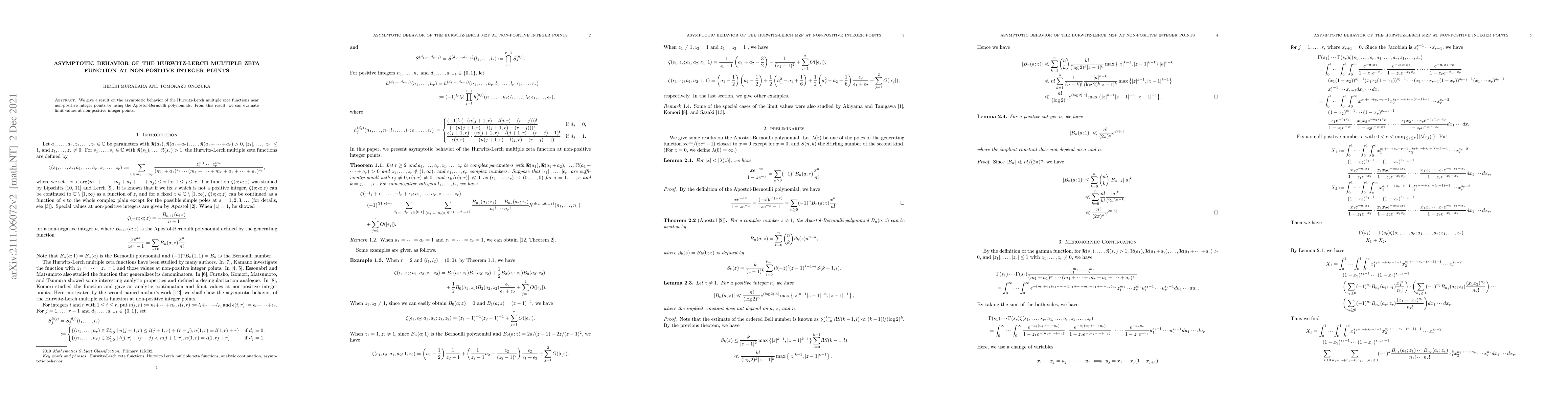Summary: This paper investigates the asymptotic behavior of the Hurwitz-Lerch multiple zeta functions near non-positive integer points, employing Apostol-Bernoulli polynomials, and derives limit values at these points.