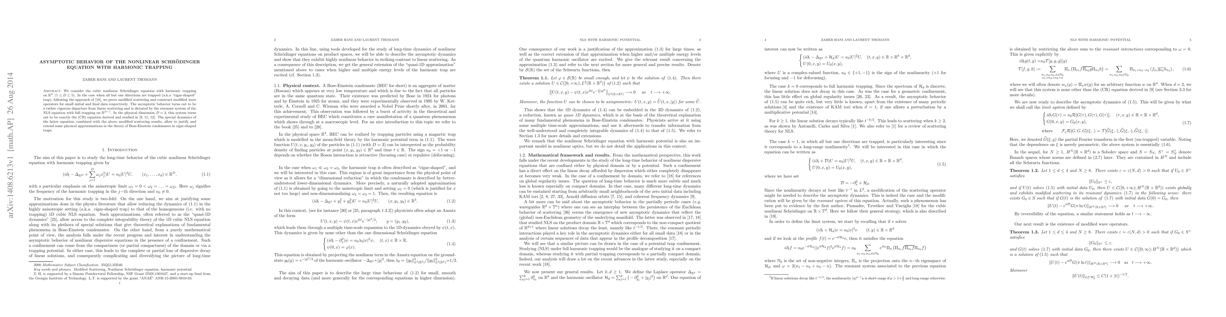 Researchers studied the nonlinear Schr"odinger equation with harmonic trapping in multiple dimensions and found vigorous departure from linear scattering, governed by a resonant system of equations. This work has implications for understanding physical approximations in Bose-Einstein condensates in cigar-shaped traps.