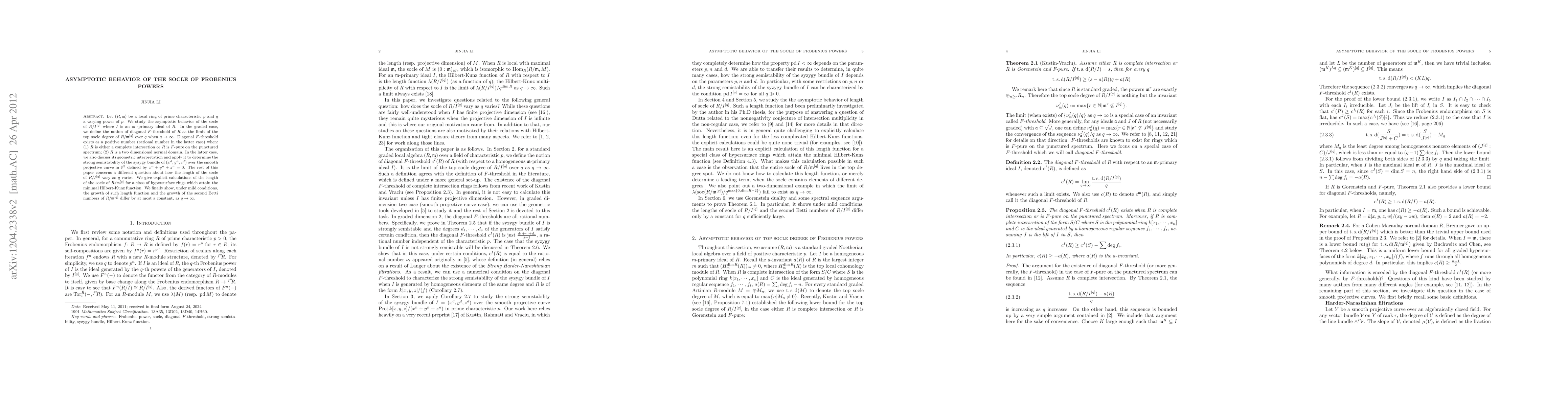 Let $(R, m)$ be a local ring of prime characteristic $p$ and $q$ a varying power of $p$. We study the asymptotic behavior of the socle of $R/I^{[q]}$ where $I$ is an $m$ -primary ideal of $R$. In the graded case, we define the notion of diagonal $F$-threshold of $R$ as the limit of the top socle degree of $R/m^{[q]}$ over $q$ when $q \to \infty$. Diagonal $F$-threshold exists as a positive number (rational number in the latter case) when: (1) $R$ is either a complete intersection or $R$ is $F$-pure on the punctured spectrum; (2) $R$ is a two dimensional normal domain. In the latter case, we also discuss its geometric interpretation and apply it to determine the strong semistability of the syzygy bundle of $(x^d, y^d,z^d)$ over the smooth projective curve in $\mathbb P^2$ defined by $x^n+y^n+z^n=0$. The rest of this paper concerns a different question about how the length of the socle of $R/I^{[q]}$ vary as $q$ varies. We give explicit calculations of the length of the socle of $R/m^{[q]}$ for a class of hypersurface rings which attain the minimal Hilbert-Kunz function. We finally show, under mild conditions, the growth of such length function and the growth of the second Betti numbers of $R/m^{[q]}$ differ by at most a constant, as $q \to \infty$.