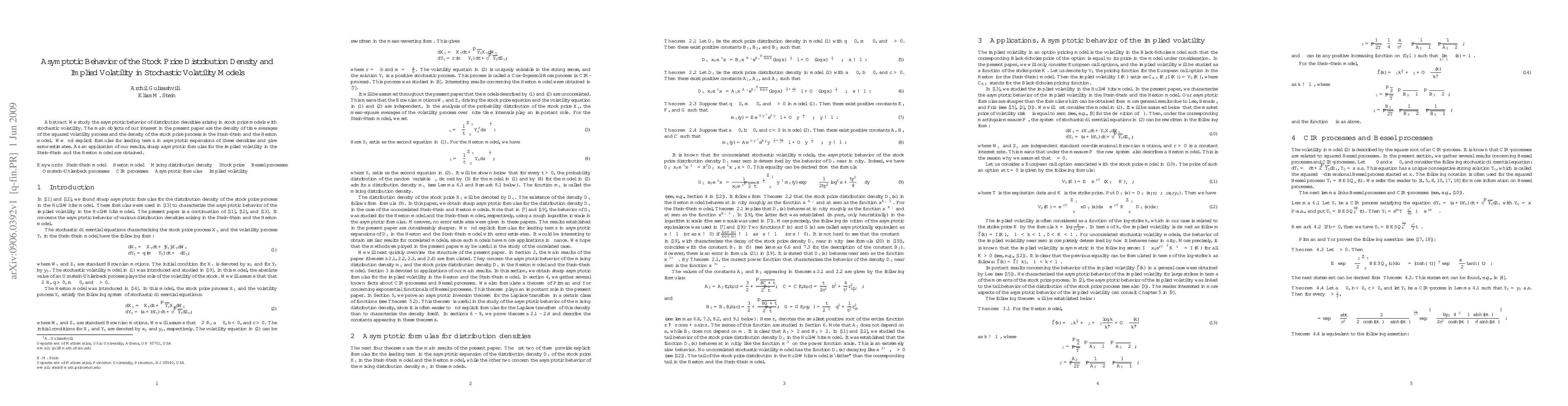 This paper investigates the asymptotic behavior of distribution densities in stock price models with stochastic volatility, deriving explicit formulas for leading terms in the expansions of these densities and providing error estimates. The results are applied to obtain sharp asymptotic formulas for implied volatility in the Stein-Stein and Heston models.