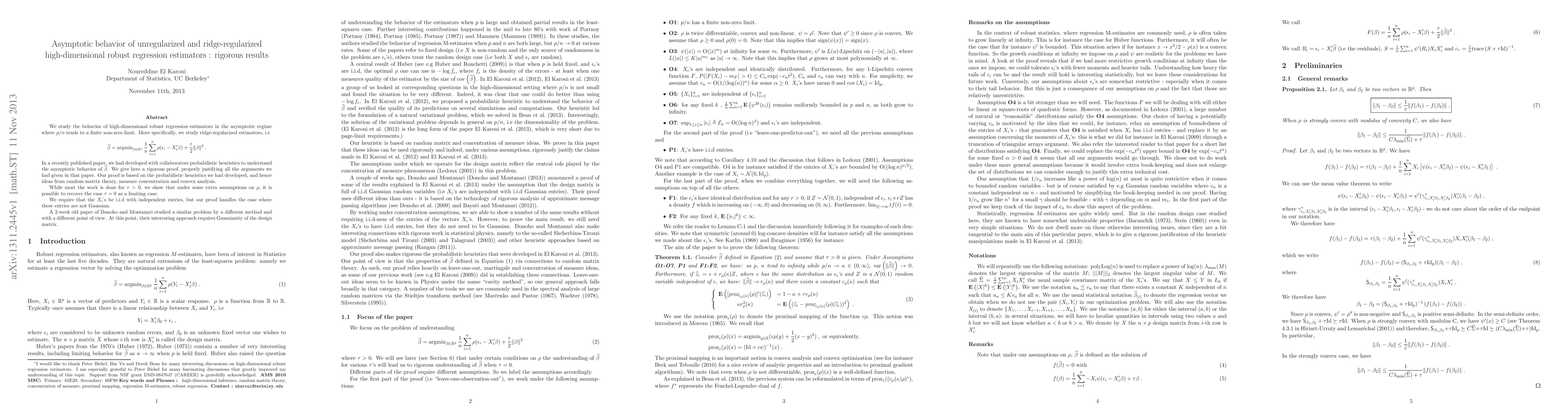 This research paper rigorously proves the asymptotic behavior of high-dimensional robust regression estimators, including ridge-regularized estimators, under certain conditions. It extends previous probabilistic heuristics with a rigorous proof that holds for non-Gaussian designs.