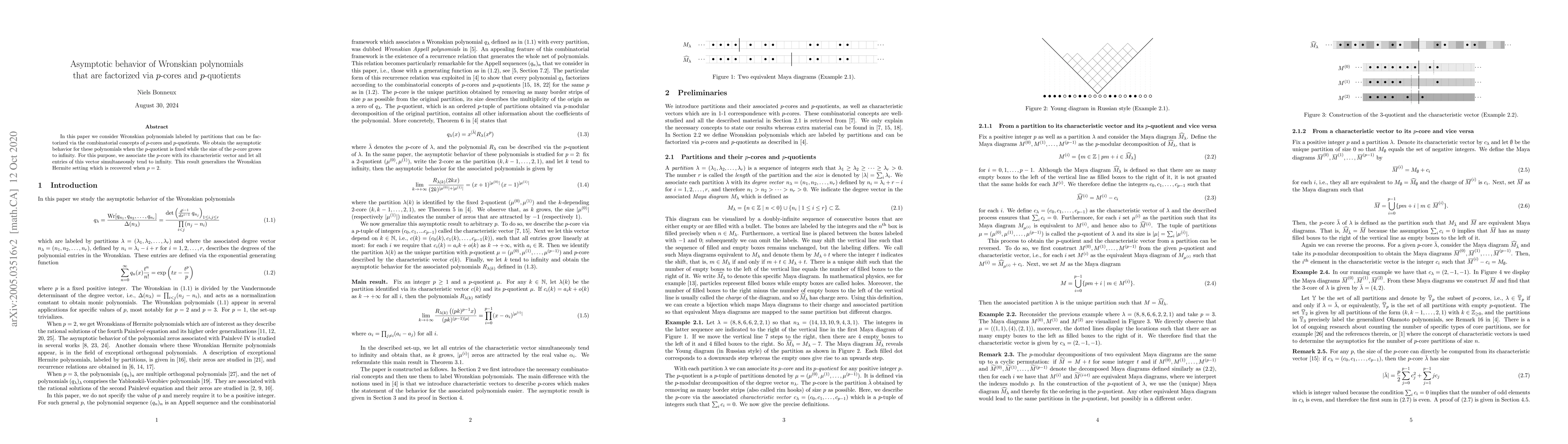 This paper studies the asymptotic behavior of Wronskian polynomials that can be factorized via p-cores and p-quotients. It generalizes a previous result to an arbitrary value of p, showing how the size of the p-core affects the polynomial's behavior as it grows.