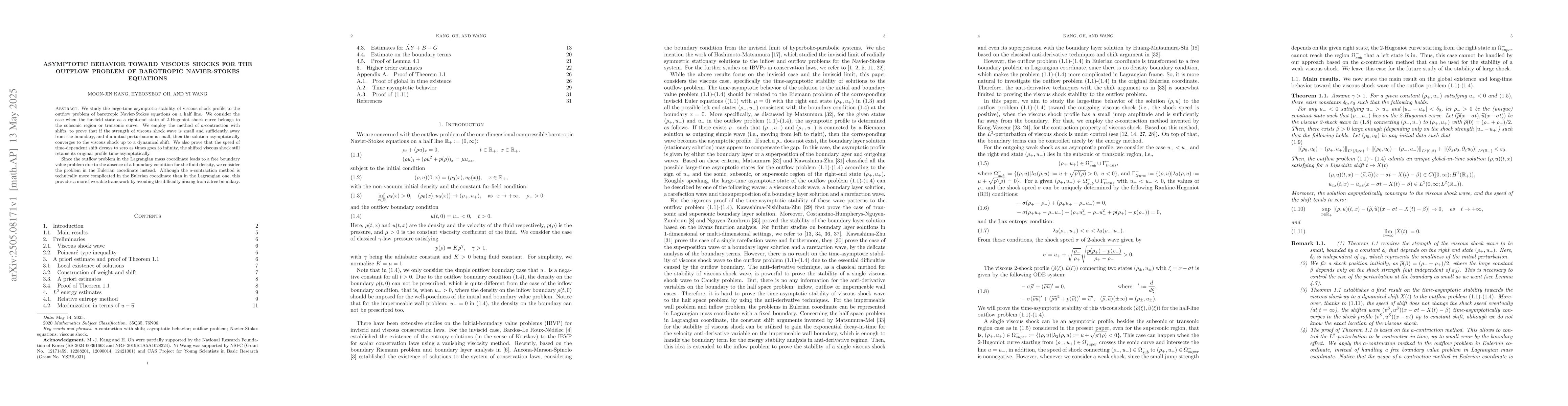 The application of the $a$-contraction method with shifts in the Eulerian coordinate to prove asymptotic stability for viscous shock profiles in the outflow problem of barotropic Navier-Stokes equations.