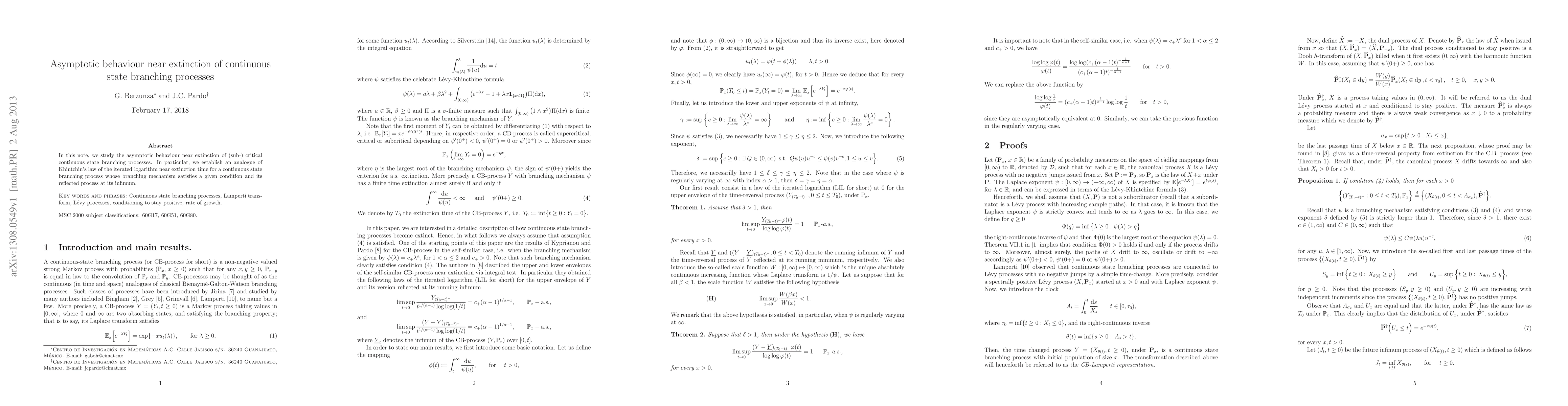 In this note, we study the asymptotic behaviour near extinction of (sub-) critical continuous state branching processes. In particular, we establish an analogue of Khintchin's law of the iterated logarithm near extinction time for a continuous state branching process whose branching mechanism satisfies a given condition and its reflected process at its infimum.