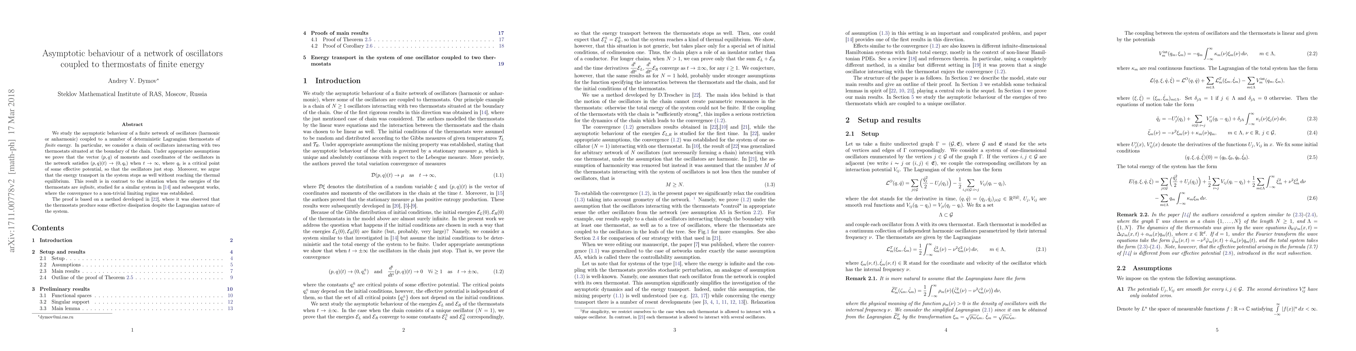 We study the asymptotic behaviour of a finite network of oscillators (harmonic or anharmonic) coupled to a number of deterministic Lagrangian thermostats of finite energy. In particular, we consider a chain of oscillators interacting with two thermostats situated at the boundary of the chain. Under appropriate assumptions we prove that the vector $(p,q)$ of moments and coordinates of the oscillators in the network satisfies $(p,q)(t)\to (0,q_c)$ when $t\to\infty$, where $q_c$ is a critical point of some effective potential, so that the oscillators just stop. Moreover, we argue that the energy transport in the system stops as well without reaching the thermal equilibrium. This result is in contrast to the situation when the energies of the thermostats are infinite, studied for a similar system in [14] and subsequent works, where the convergence to a non-trivial limiting regime was established. The proof is based on a method developed in [22], where it was observed that the thermostats produce some effective dissipation despite the Lagrangian nature of the system.