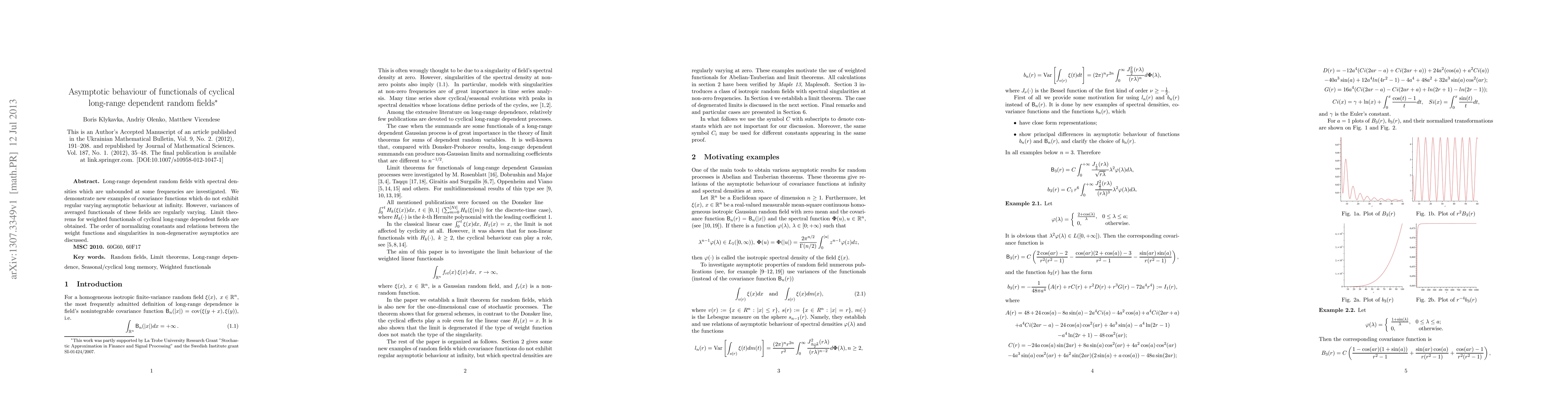 This paper explores long-range dependent random fields with unbounded spectral densities, presenting covariance functions that lack regular varying asymptotic behavior. It demonstrates that averaged functionals' variances still exhibit regular varying behavior and derives limit theorems for cyclical long-range dependent fields, discussing the order of normalizing constants and the relationship between weight functions and singularities.