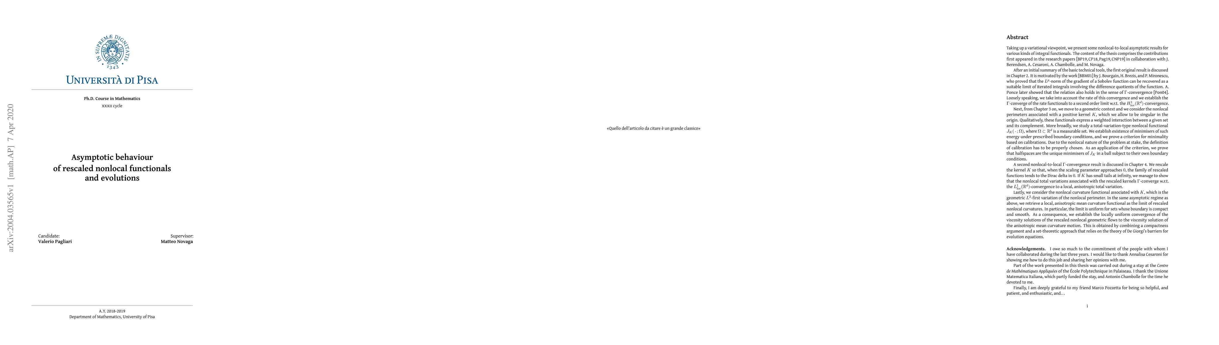 This research explores asymptotic behavior of nonlocal functionals, showing how they converge to local counterparts. It compiles findings from previous collaborative works, providing insights into variational methods and nonlocal-to-local evolutions.