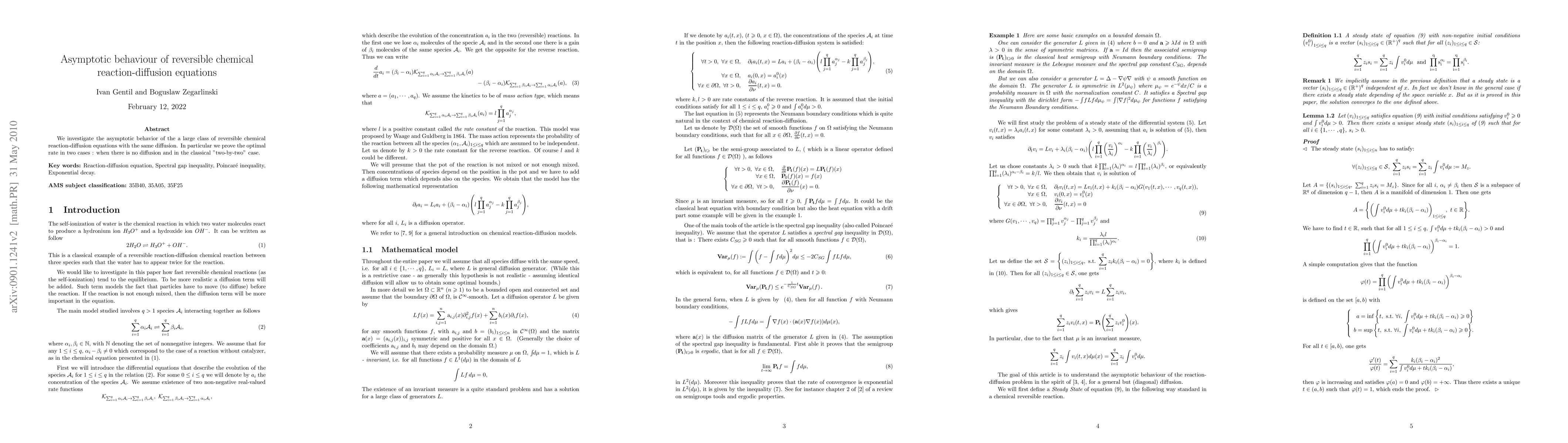 This paper studies the asymptotic behavior of reversible chemical reaction-diffusion equations, focusing on proving the optimal rate of convergence in two scenarios: no diffusion and the classic "two-by-two" case.