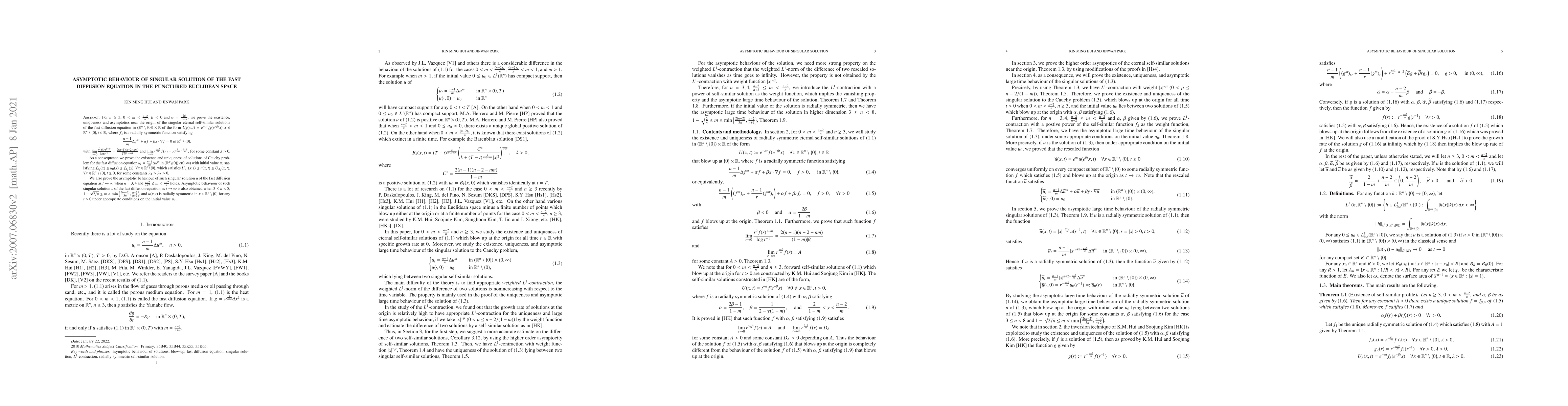 This paper proves the existence, uniqueness, and asymptotic behavior of singular eternal self-similar solutions to the fast diffusion equation in punctured Euclidean space. It establishes the asymptotic behavior of these solutions as time approaches infinity under specific conditions on the spatial dimension and the exponent.