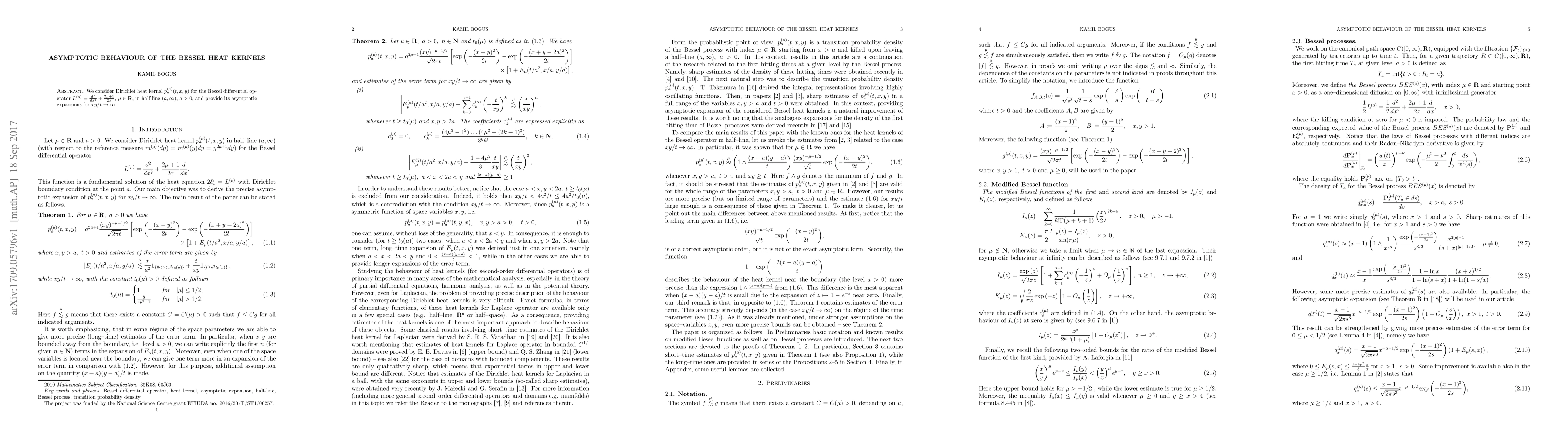 This paper investigates the asymptotic behavior of the Dirichlet heat kernel for the Bessel differential operator in the half-line, providing detailed expansions as the ratio of the distance between points to the time variable approaches infinity.