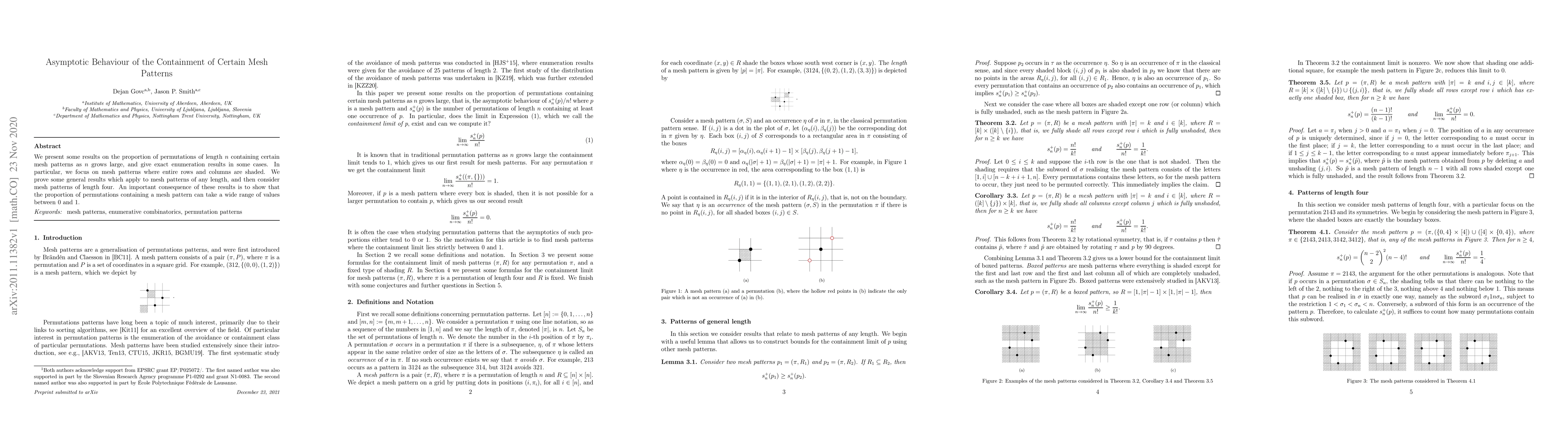 This research investigates the asymptotic behavior of permutations containing specific mesh patterns as permutation length increases, finding that the proportion of such permutations spans a broad range from 0 to 1. Exact enumeration results are provided for certain mesh patterns, particularly those where entire rows and columns are shaded.
