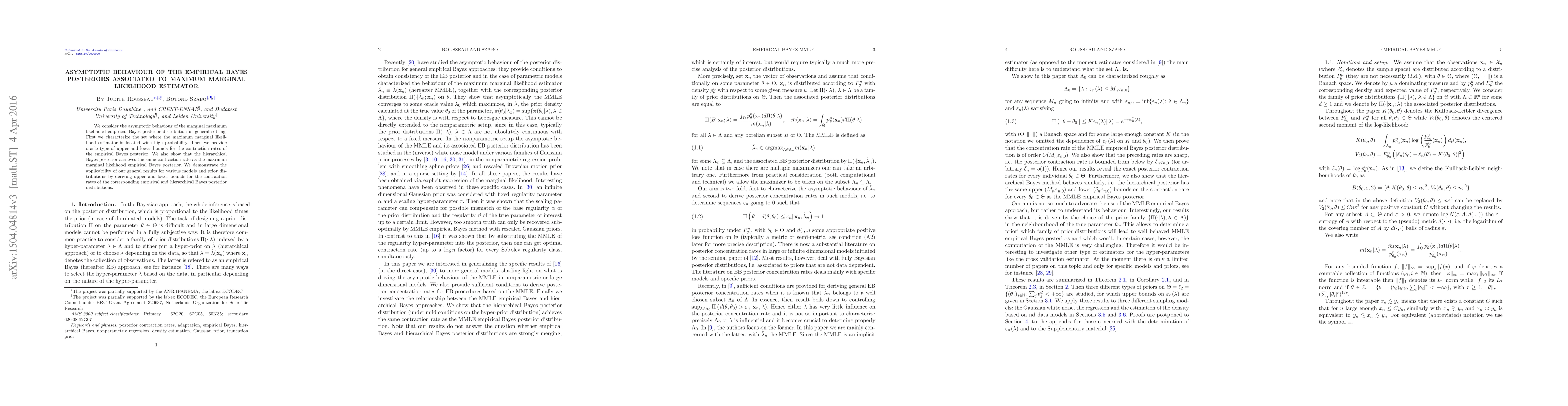 This paper investigates the asymptotic behavior of empirical Bayes posteriors derived from the maximum marginal likelihood estimator, providing upper and lower bounds for their contraction rates. It demonstrates that the hierarchical Bayes posterior achieves the same contraction rate, and applies these results to various models and prior distributions.