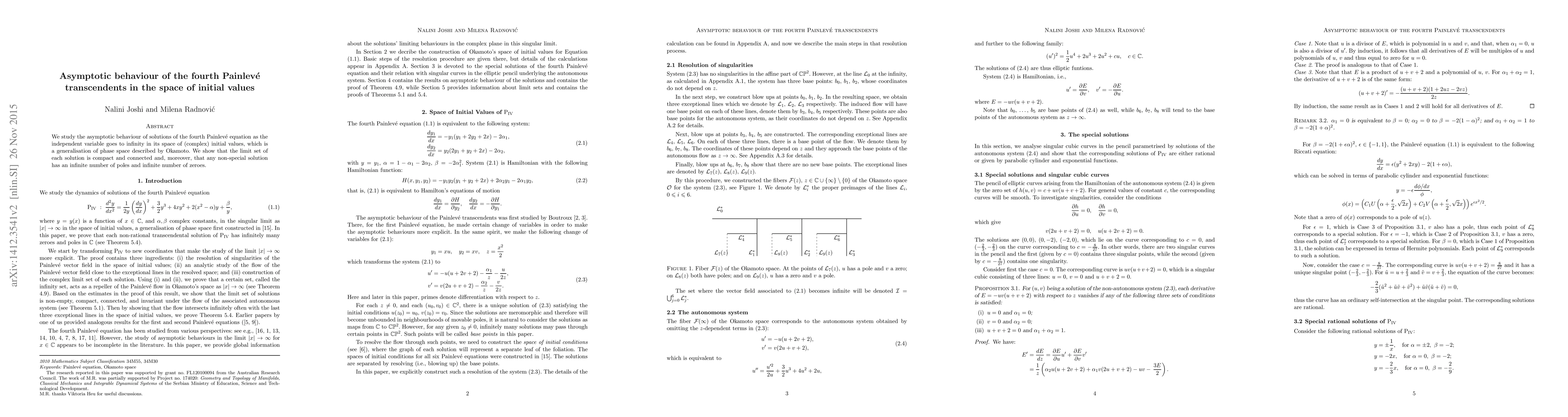 This paper studies the asymptotic behavior of solutions to the fourth Painlevé equation as the independent variable goes to infinity, showing that non-special solutions have infinite poles and zeroes in a compact and connected limit set.