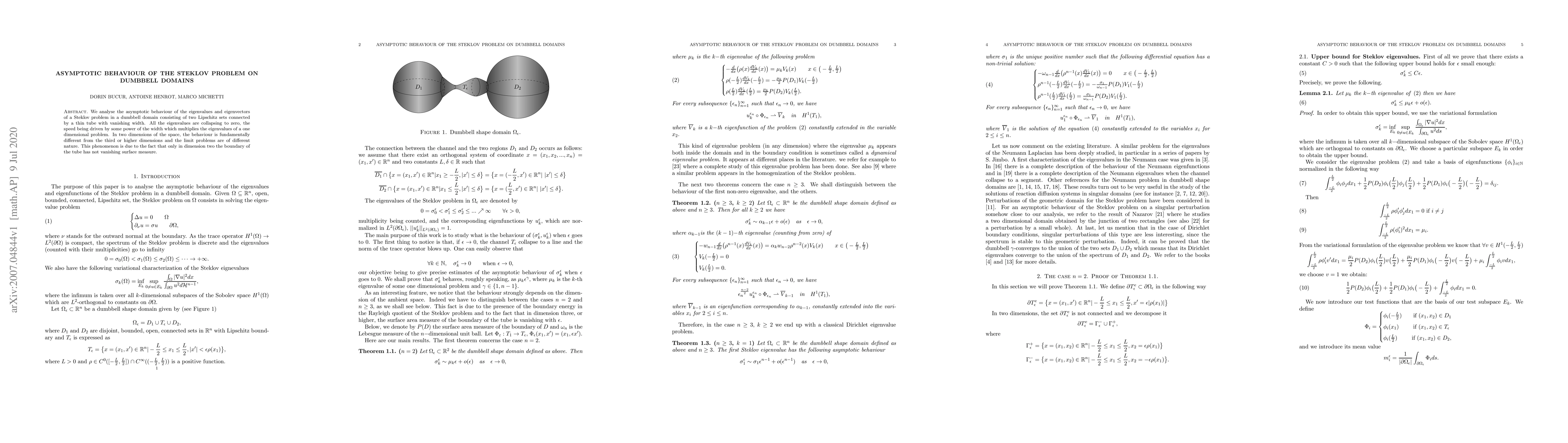 This research paper studies how eigenvalues of a Steklov problem on dumbbell domains behave asymptotically as the domain's width approaches zero, finding that they collapse to zero at a rate driven by the dimensionality of space.