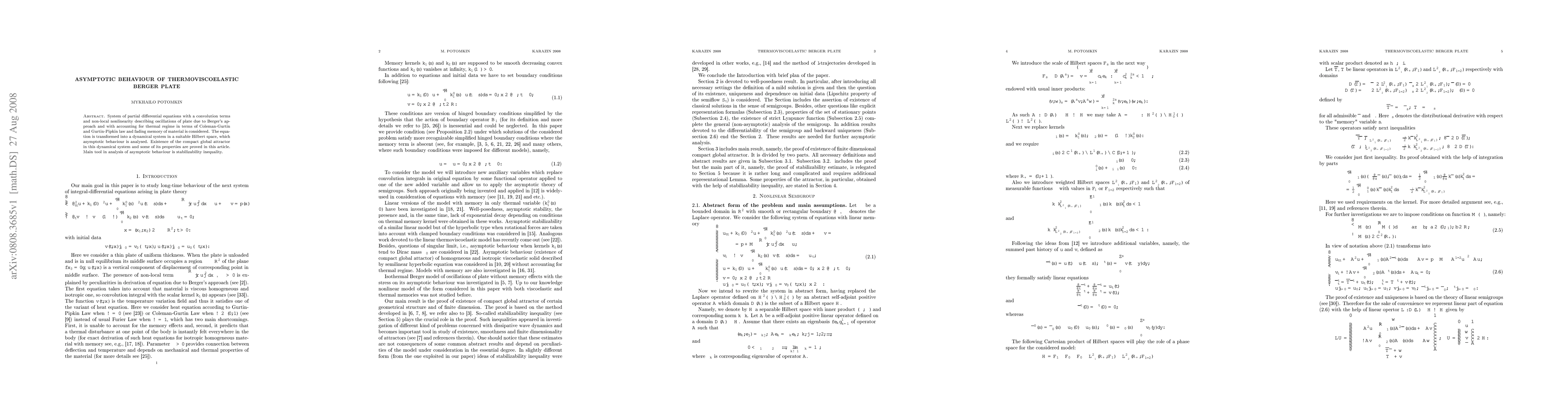 Researchers analyzed the asymptotic behavior of a thermoviscoelastic Berger plate model, transforming it into a dynamical system to study its stability and attractors, finding the existence of a compact global attractor.