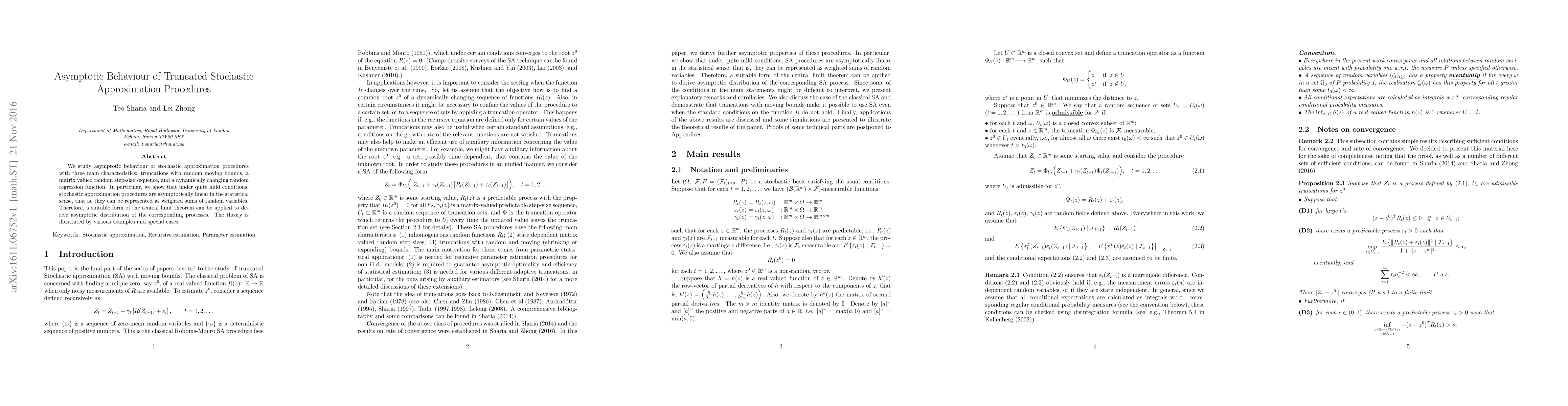 Stochastic approximation procedures with specific characteristics show asymptotic linear behavior, allowing for application of the central limit theorem to derive their distributions. This enables researchers to analyze the statistical properties of these methods in various fields.