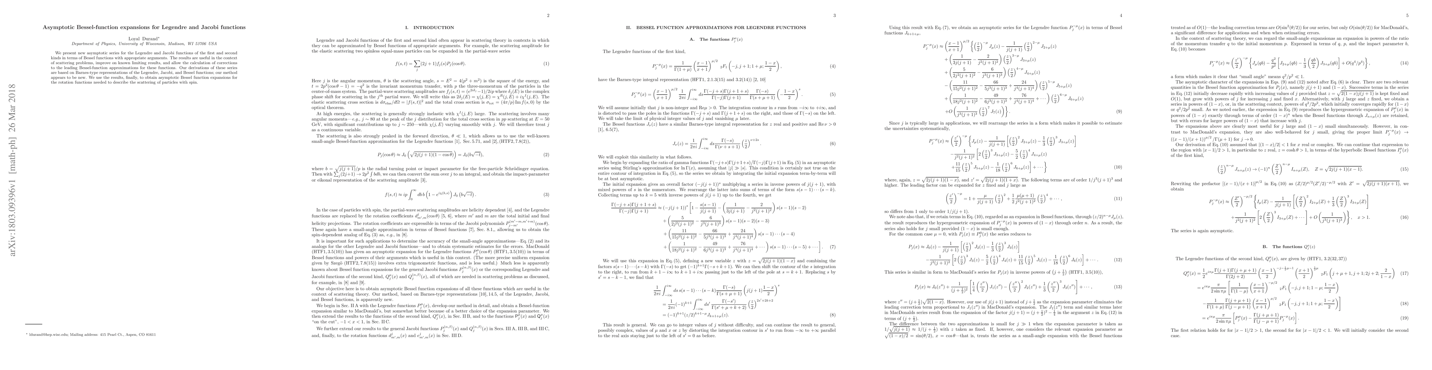 The paper introduces a novel method for deriving asymptotic series for Legendre and Jacobi functions using Barnes-type representations and Bessel functions, providing improved approximations for scattering problems.
