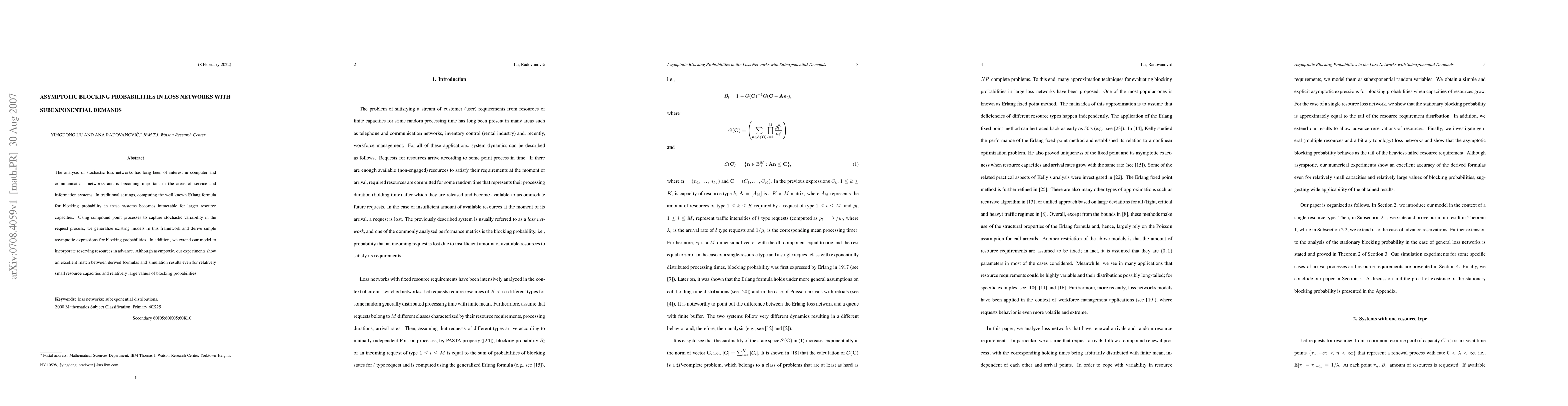 The analysis of stochastic loss networks has long been of interest in computer and communications networks and is becoming important in the areas of service and information systems. In traditional settings, computing the well known Erlang formula for blocking probability in these systems becomes intractable for larger resource capacities. Using compound point processes to capture stochastic variability in the request process, we generalize existing models in this framework and derive simple asymptotic expressions for blocking probabilities. In addition, we extend our model to incorporate reserving resources in advance. Although asymptotic, our experiments show an excellent match between derived formulas and simulation results even for relatively small resource capacities and relatively large values of blocking probabilities.