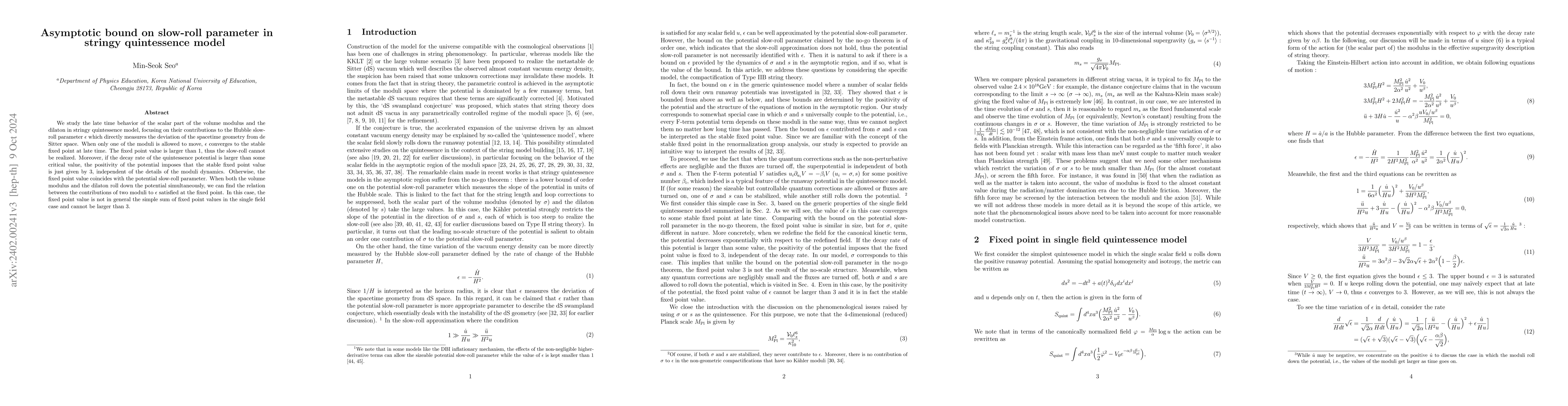 This paper investigates the late-time behavior of the volume modulus and dilaton in a stringy quintessence model, finding that the Hubble slow-roll parameter $\epsilon$ converges to a fixed point value. When only one field is allowed to move, $\epsilon$ cannot realize slow-roll as it exceeds $1$, and is fixed at $3$ if the quintessence potential's decay rate is above a critical value.