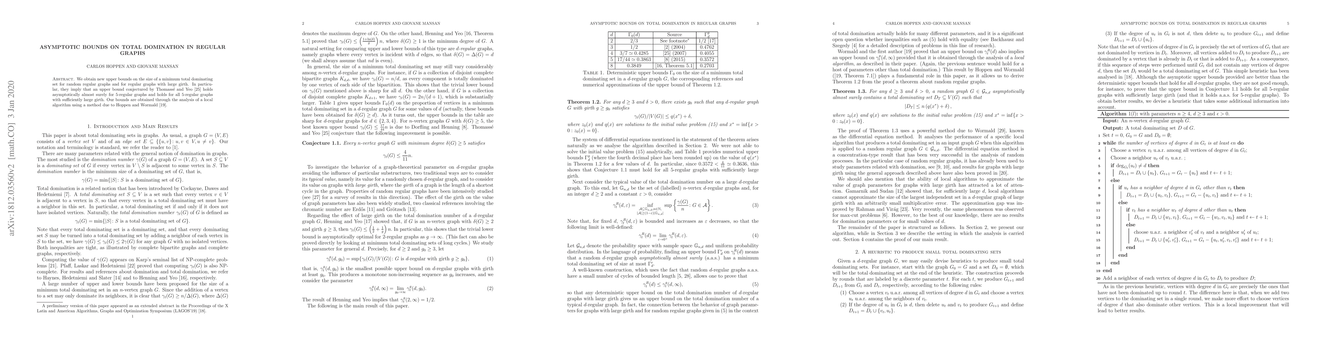 This paper establishes new upper bounds for the size of a minimum totally dominating set in random regular graphs and regular graphs with large girth, using a local algorithm analysis inspired by Hoppen and Wormald's method. The findings provide significant improvements in understanding domination properties in these graph types.