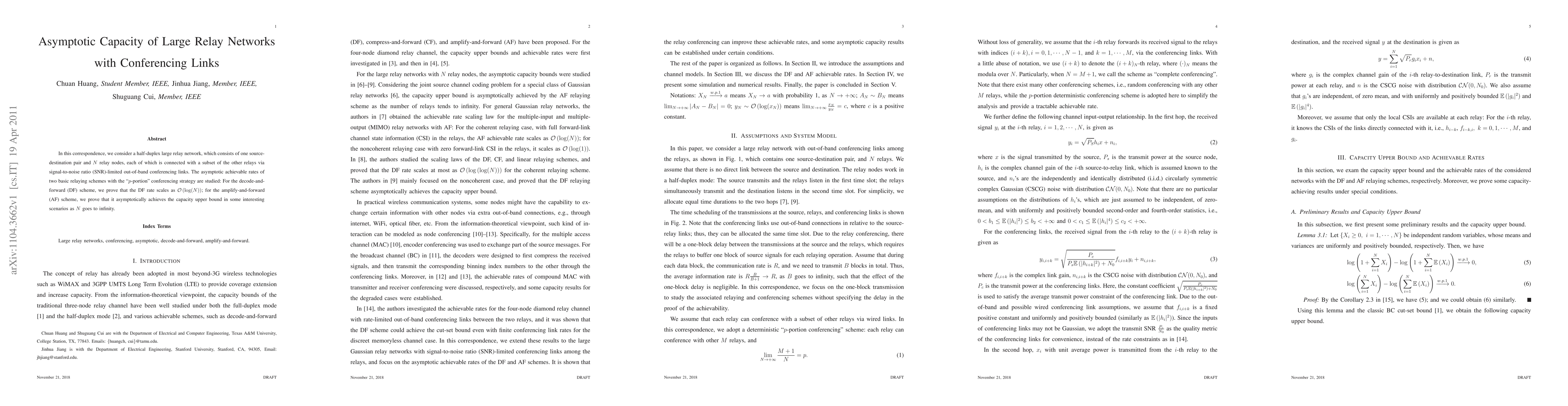 This paper investigates the asymptotic capacity of large relay networks with conferencing links, showing that the decode-and-forward scheme achieves an achievable rate of $\mathcal{O} (\log (N))$, while the amplify-and-forward scheme can asymptotically reach the capacity upper bound under certain conditions as the number of relays $N$ increases.