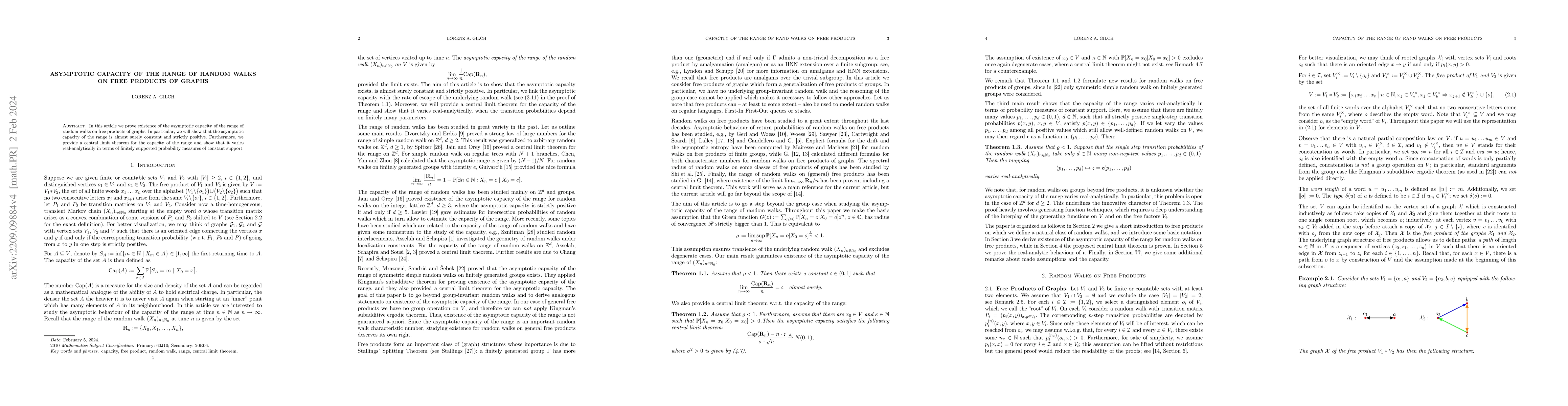 This paper proves the existence of an asymptotic capacity for the range of random walks on free products of graphs, demonstrating it is almost surely constant and strictly positive. It also presents a central limit theorem for this capacity and shows its real-analytic variation concerning finitely supported probability measures.