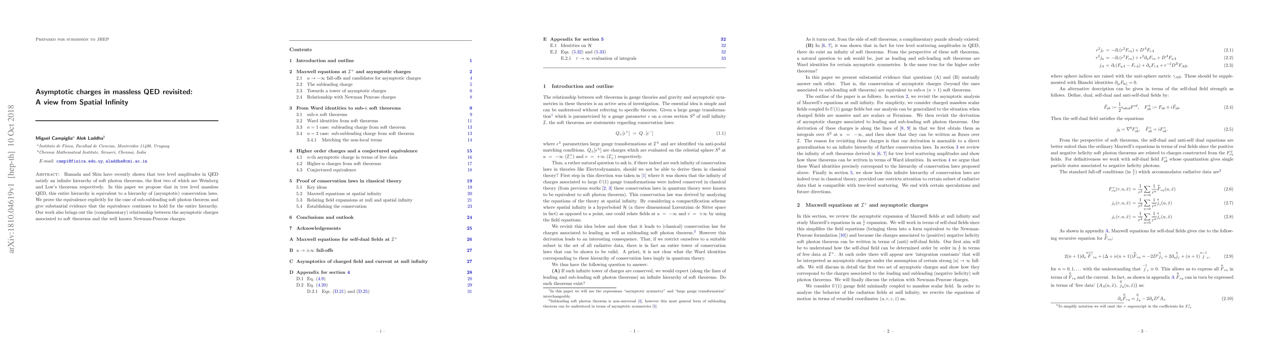 Hamada and Shiu have recently shown that tree level amplitudes in QED satisfy an infinite hierarchy of soft photon theorems, the first two of which are Weinberg and Low's theorems respectively. In this paper we propose that in tree level massless QED, this entire hierarchy is equivalent to a hierarchy of (asymptotic) conservation laws. We prove the equivalence explicitly for the case of sub-subleading soft photon theorem and give substantial evidence that the equivalence continues to hold for the entire hierarchy. Our work also brings out the (complimentary) relationship between the asymptotic charges associated to soft theorems and the well known Newman-Penrose charges.