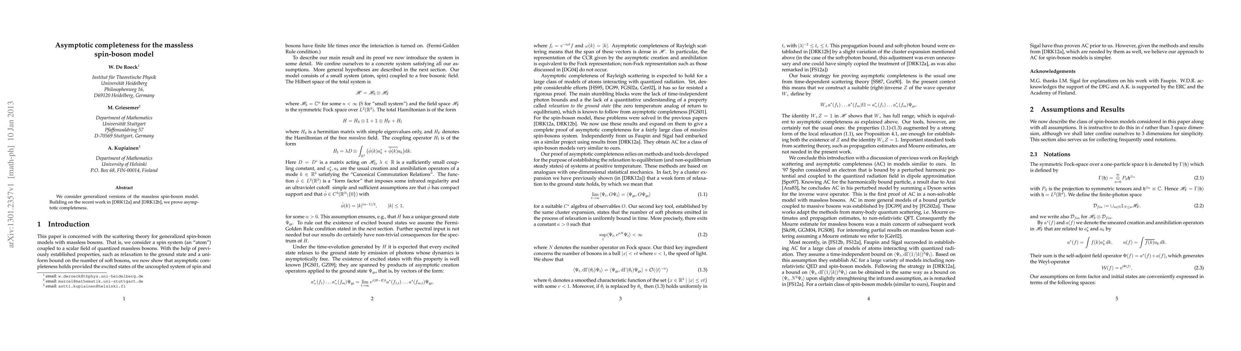 This paper proves asymptotic completeness for generalized versions of the massless spin-boson model, building on recent work that established approach to ground state and propagation bounds. The findings extend understanding of the model's long-term behavior.