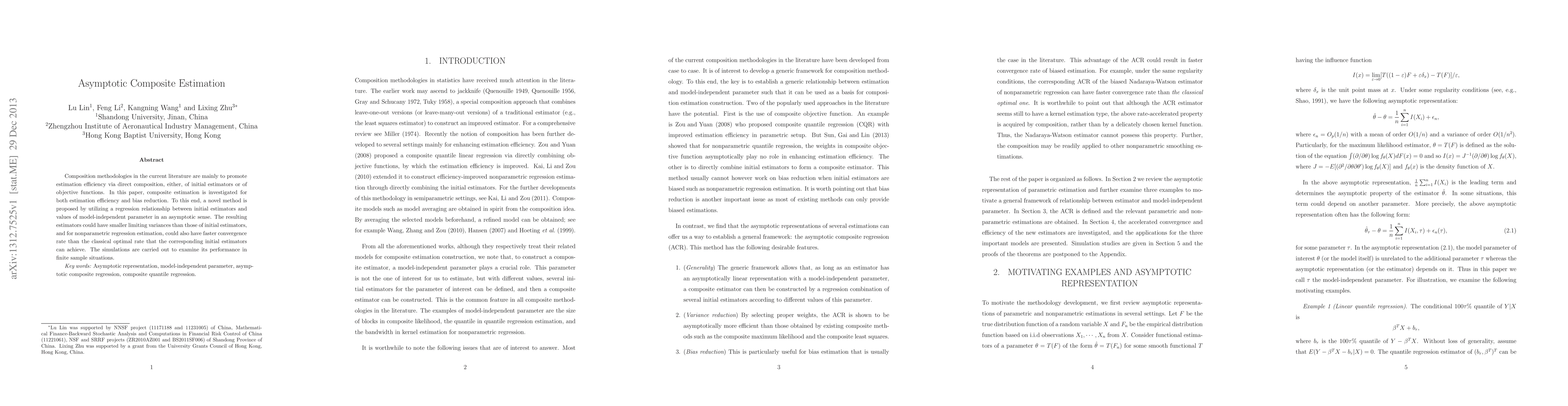 Researchers propose a novel method for composite estimation to improve efficiency and reduce bias in statistical models. The approach uses regression relationships between initial estimators and model-independent parameters to achieve smaller variances and faster convergence rates.
