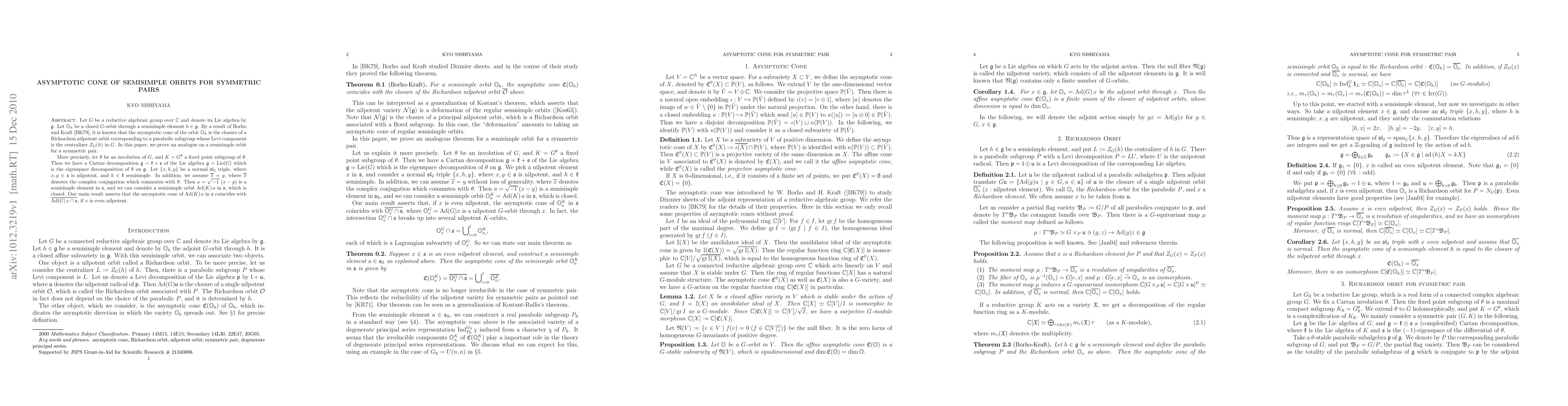 Let G be a reductive algebraic group over the complex field and O_h be a closed adjoint orbit through a semisimple element h. By a result of Borho and Kraft (1979), it is known that the asymptotic cone of the orbit O_h is the closure of a Richardson nilpotent orbit corresponding to a parabolic subgroup whose Levi component is the centralizer Z_G(h) in G. In this paper, we prove an analogue on a semisimple orbit for a symmetric pair (G, K).