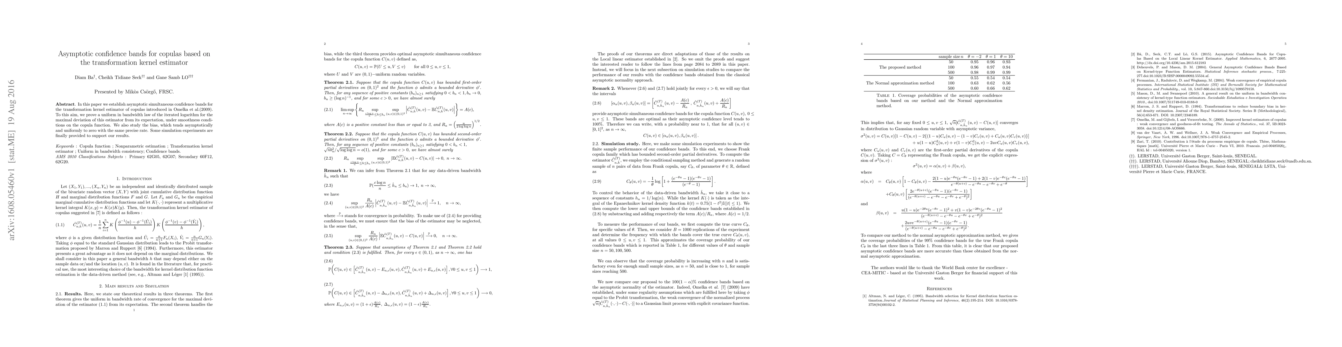 This paper establishes asymptotic simultaneous confidence bands for the transformation kernel estimator of copulas, proving a uniform law of the iterated logarithm for the estimator's deviation and demonstrating its asymptotic bias reduction. Simulation experiments support the theoretical findings.
